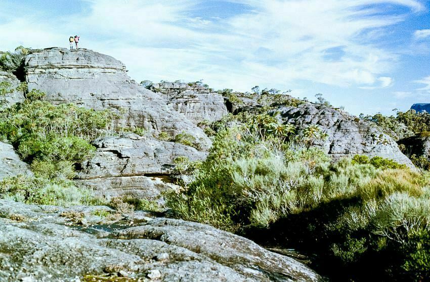 We were away by 9:40am and found progress to be better than I had remembered it from trip about ten years previously with Chris and Rick. We stayed way up from the cliff line below us and remained on the ridges where possible. We encountered very few sections of thick scrub on this route.