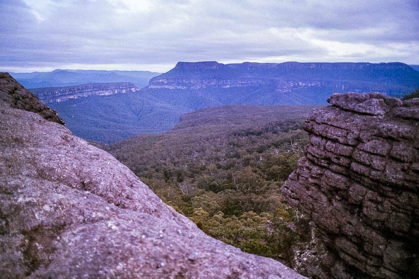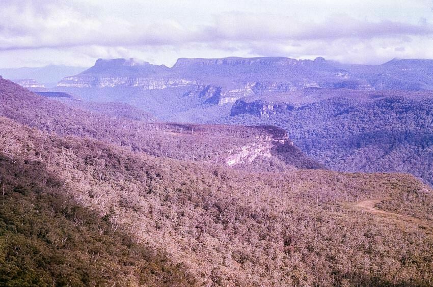 There are excellent views from the western side of Mount Bushwalker. You can see Byangee Mountain, The Castle, Shrouded Gods, Mount Elliot, Sturgiss Mountain, Folly Point. From here we walked south to Gadara Point and off the plateau’s southern end across the ridge to Pallin Pass then over Talaterang Mountain where we camped on it’s southern side.