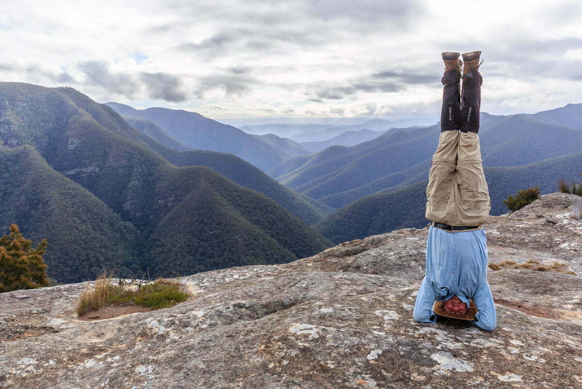 Tuesday night was spent at the Boyd River campground to allow us to get an early start. Steve was dropped off at the Kanangra Walls Lookout where he was aiming to get an overnight star trail series. By just before dark he had managed to pitch his tent precariously, without pegs on a rock ledge near the cliff edge. Trish had driven up with us and stayed Tuesday night to drive our car back to Katoomba, all so we could avoid the long car drop after the walk – thanks heaps Trish!