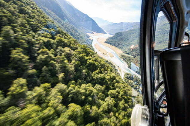 The talk amongst other trampers indicated that the 8 hour walk back along the Wilkin River valley was quite tedious so we were keen to get a back flight seat aboard a plane or helicopter to Makarora. These flights typically bringing paying passengers in for day walks. Unfortunately for us this was the plan of eight other trampers as well so we were not overly confident we would not be walking. Shortly after the three people first in line crossed the river to wait for a plane, one arrived, dropped off some people and then left gain without them. Soon after, about 10:00am a helicopter appeared down the valley, landed right in front of us and offered all five of us our return flight for $NZ85 per person. It was a really exciting and a fitting way to end a wonderful walk.