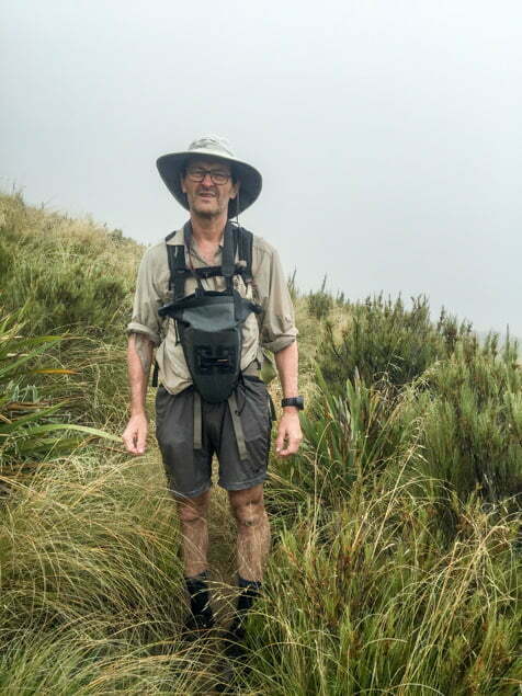 The vegetation was very wet and our clothing was soon soaked. It was a substantial climb from the hut and we were shrouded in mist most of the day. For a change on this trip we were quite cold as we were wet for the whole day. We were very happy to see Acland shelter where we stopped for lunch and made a hot drink.