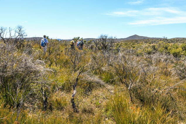 After a couple of hours walking across the Corang Plateau, and a short foray by some onto the track which heads around the south side of Corang Peak, we reached the summit of cairned summit Corang Peak. The views were pleasant and extensive in all directions but unfortunately the wind was not so after a quick lunch we commenced our return journey. Even though this was the easy option we still walked 21km for the day. We arrived back at Wog Wog by 4:00pm.