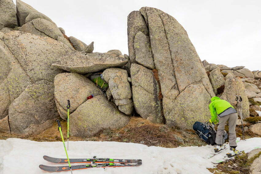 Everyone apart from Stephen Poole and myself were finishing their trip today. The rest of the group again decided to head towards Watsons Crags before returning to camp mid-afternoon and then heading back to their vehicles at Guthega. Stephen and I opted to head in the opposite direction, first summiting Mount Anderson before skiing onto its northern ridge. From here we ended up completing four excellent runs down to Three Rocks Creek, near it’s weather station, either side of lunch.