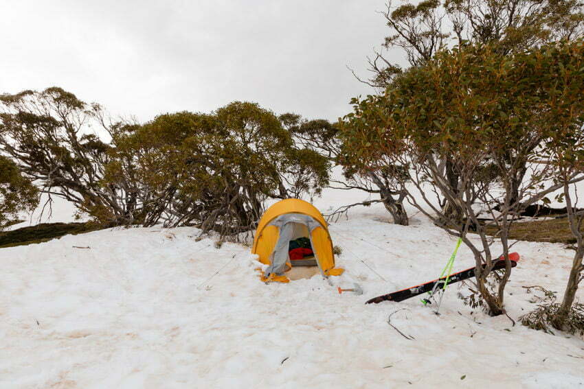 The ski down Mount Twynam was very poor in slow, boggy and inconsistent snow, so after this the Mount Anton ski no longer held any appeal. Instead we headed back to camp and were quickly back into our tents as a few more showers passed overhead.