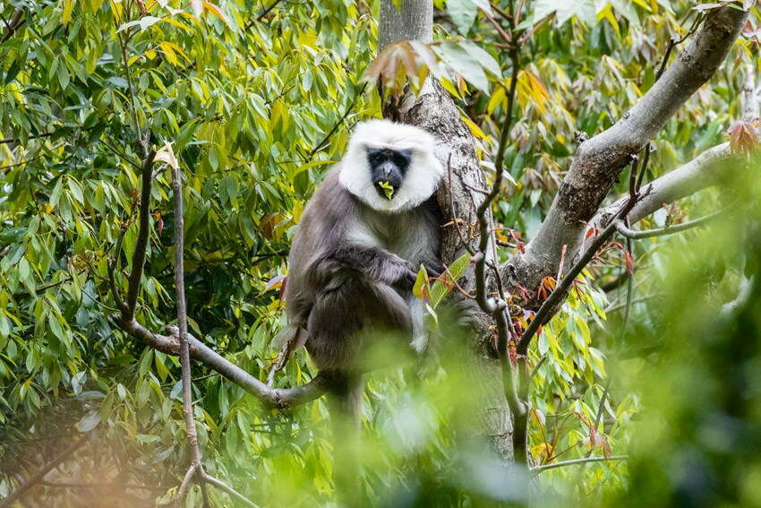 We saw a snake which was light green coloured and apparently venomous. It was a bit disturbed by our presence and slithered across the path. We came across a group of black faced monkeys with heads fringed by white fur in the trees. They quickly scurried away when they saw us approach.