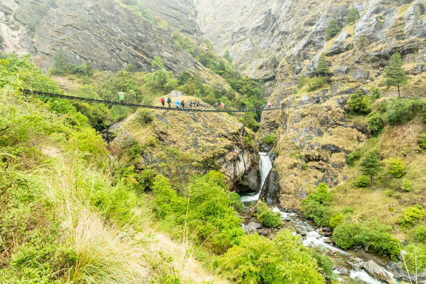 Day 2 on the Manaslu Circuit saw some rain and multiple waterfalls from one suspension bridge.