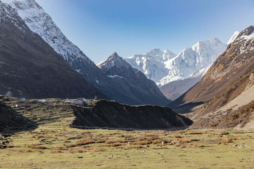 We were off to an early start again on a less challenging route up the valley. The weather was stunning and we were surrounded by grandeur in all directions. Ganesh IV was particularly impressive. We followed the river along the deep and wide glacial valley acknowledging the locals with the Sherpa greeting of “Taishi Delek”. We passed several small villages that certainly make good use of the local materials, the stone houses appear to be assembled like a jigsaw puzzle – no mortar is used.