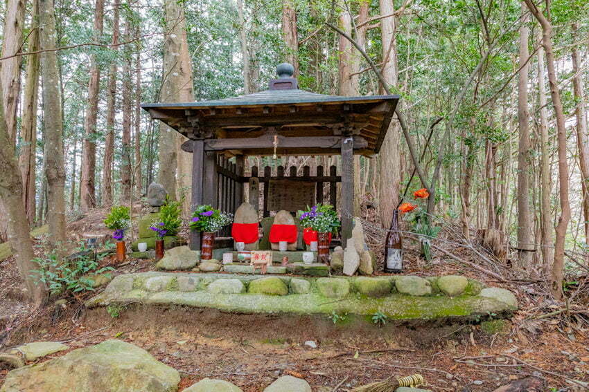 From Kyoto we took two trains and a bus to the start of the walk. After a brief look at the Kumano Kodo pilgrimage centre we were on our way. The weather was quite fresh but there was no rain which made for quite pleasant walking conditions. The climb started soon after starting through lovely forest. There were many small shrines along the way featuring fresh flowers and semi clothed statues.