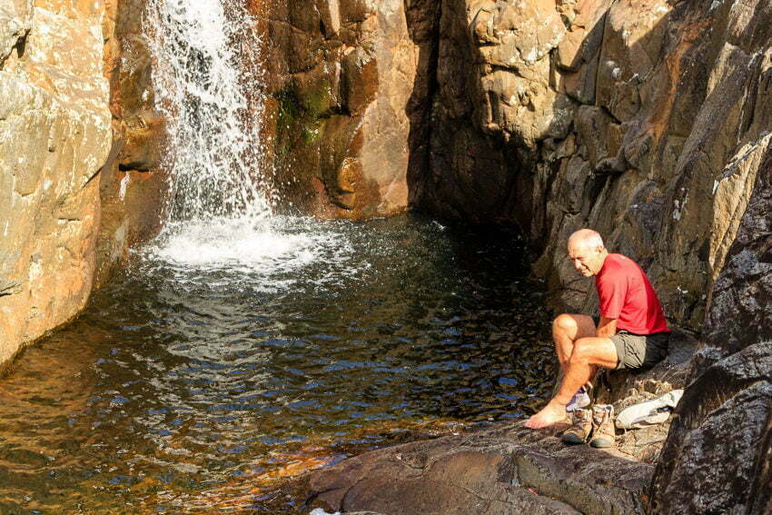 The start of this walk is located on a small side track off the Yarramunmun Fire Trail, which is accessed via the Nerriga road. Apart from a stroll in along the fire trail the walk is completely off track with no defined path. The clamber down the creek gives good views of cascades and waterfalls, the most pleasant being the large pool at the lowest section of the creek reached on the walk.