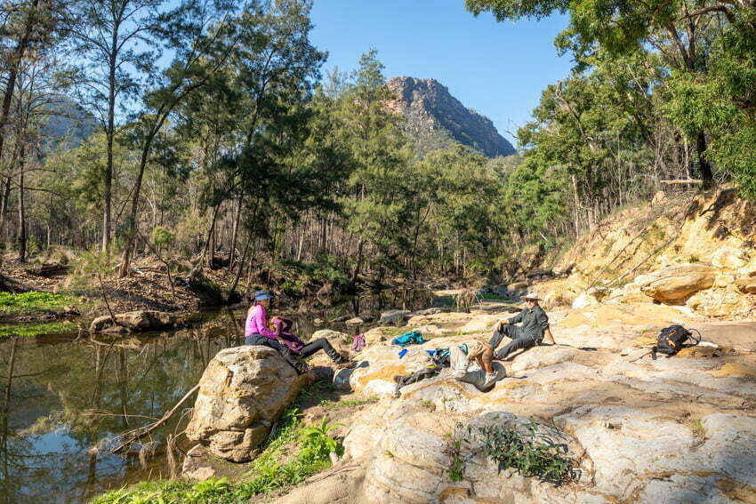 We enjoyed lunch by the river at McArthurs Flat, a picturesque spot that had previously been used for grazing. We crossed over to Troys Creek, observing the remnants of an old farm house along it’s banks. Here we refilled our water bottles for the long climb out.