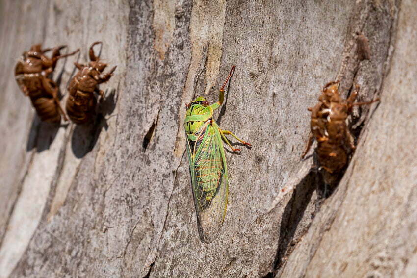 Parking at the beginning of Gemini Creek Road we headed down it for a short distance before turning off onto the Snow Gums Walking Trail. This short forest walk leads you to a view of the largest snow gum in the world, here they can grow to 40m in height. These lofty, grey coloured bark snow gums look very different to their much smaller, gnarly, often very colourful relatives found in Kosciuszko National Park. After completing the Snow Gum Walking Track circuit we were back on the fire trail for a short walk to the rustic Cattle Creek Hut. This is set in a delightful location in the forest alongside a small creek. Here we spent a few minutes watching emerging circadas being eaten by ants, debating whether to mount a rescue or not and quickly decided not to interfere in a perfectly natural event.