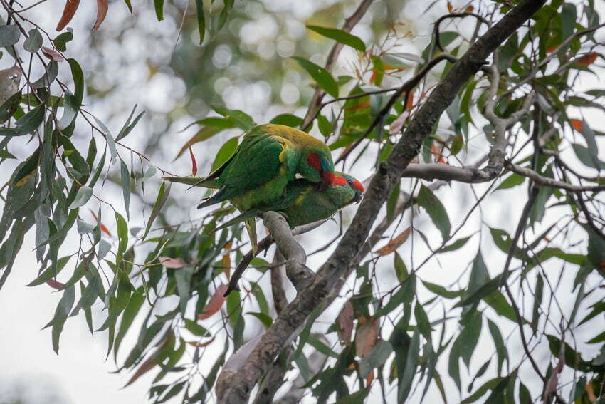 A couple of hundred metres before Shepherds Peak, on the edge of the ridge to the left of the trail, we encountered a number of Musk Lorikeets and butterflys feeding on very impressive bunch of tall, flowering grass trees. The Musk Lorikeet (Glossopsitta concinna) displayed great agility in their efforts to reach the tastiest morsels, whilst if you looked much more closely you could also see a couple of different species of butteries getting their fill as well. Later one pair of the Musk Lorikeets decided it was the time and place for a mating session.