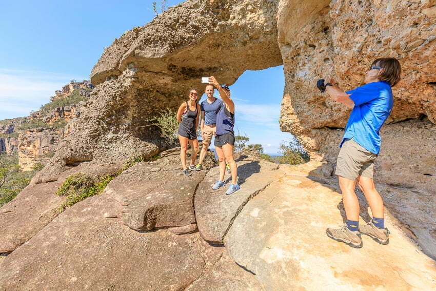 Cristina, Darren, Bethany and Sue under the Arch with nearby Byangee Mountain